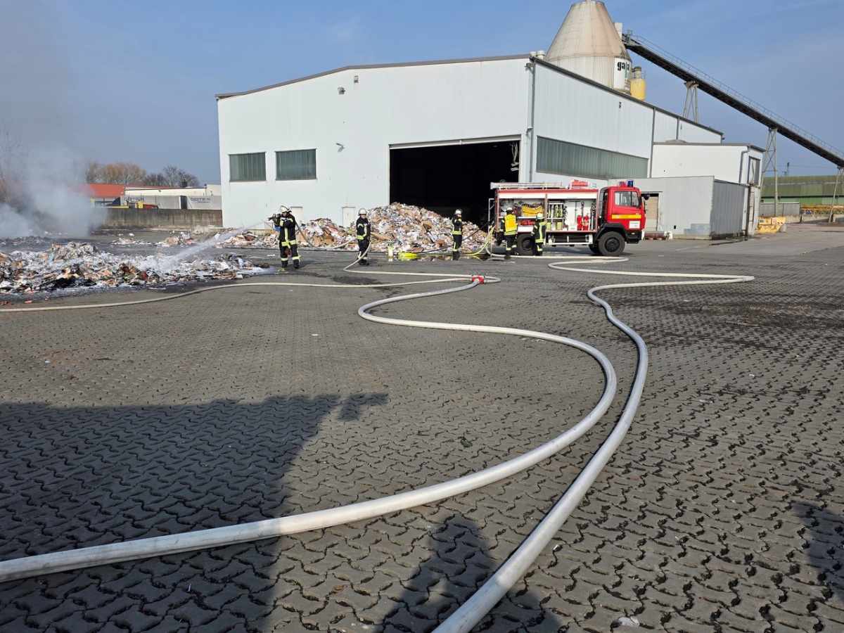 Vor Ort brannten ca. 3 Tonnen Altpapier in voller Ausdehnung. Das Altpapier wurde mittels Radlader auseinander gezogen und mit vier C-Rohren abgelöscht. Der Einsatz zog sich über 2 Stunden. Die Brandursache ist unklar.